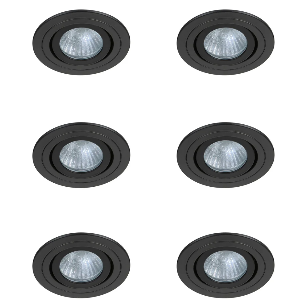Pack of 6 Ellis & Co IP65 Matt Black Round Tiltable Bathroom Downlights