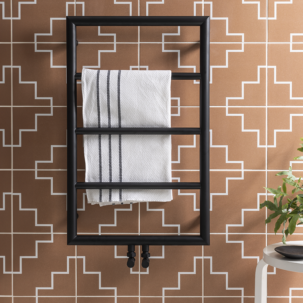 The 800mm high heated towel rail is an excellent addition to the Arezzo towel rail range, featuring a classic timeless design. Manufactured from durable steel with a modern eye-catching matt black finish, this stylish round bar towel rail provides superb heat output which will gently warm towels and your bathroom or cloakroom.
