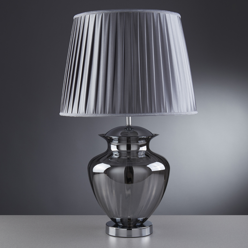When it comes to lighting this stunning smoked glass table lamp is simply the height of luxury. Suitable for both traditional and contemporary settings, this chrome table lamp boasts a glass urn shaped base and an elegant grey pleated shade.