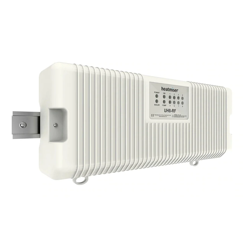 The Heatmiser UH8-RF is an 8 Zone wireless wiring centre designed to work with Slimline-RF and neoAir Thermostats.