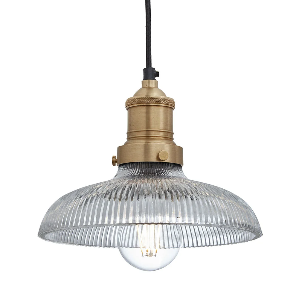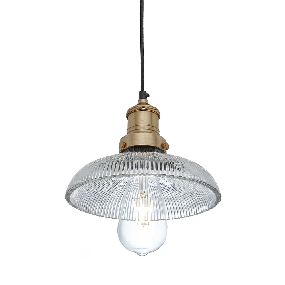 The perfect blend of the industrial and the classic; Industville range of glass lights will complement any existing interior themes and bring a touch of elegance to any space. The classic glass design disperses the light in an atmospheric way, casting shadows and creating an ambient environment that is perfect for a range of spaces. The glass shades are ribbed for a retro design that blends in with almost any kind of décor. The minimalist holder makes it the perfect way to tap into the increasingly popular industrial trend whilst maintaining a sense of grandeur. These Lights are IP20 rated.