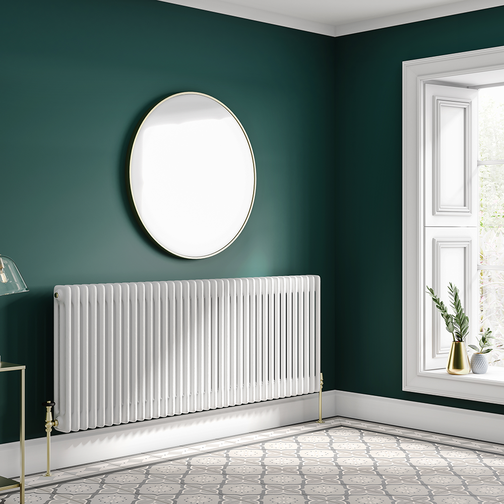 The Keswick Cast Iron Style Radiator is a blend of traditional and current design. At 1550mm wide, this white horizontal radiator is perfect for long or narrow rooms, like bathrooms and hallways. Its traditional column radiator aesthetic dovetails with a gloss white finish for a distinctly modern look. The other contemporary plus point is the exceptionally high heat output. Mount the radiator in no time using the simple fixing kit supplied.