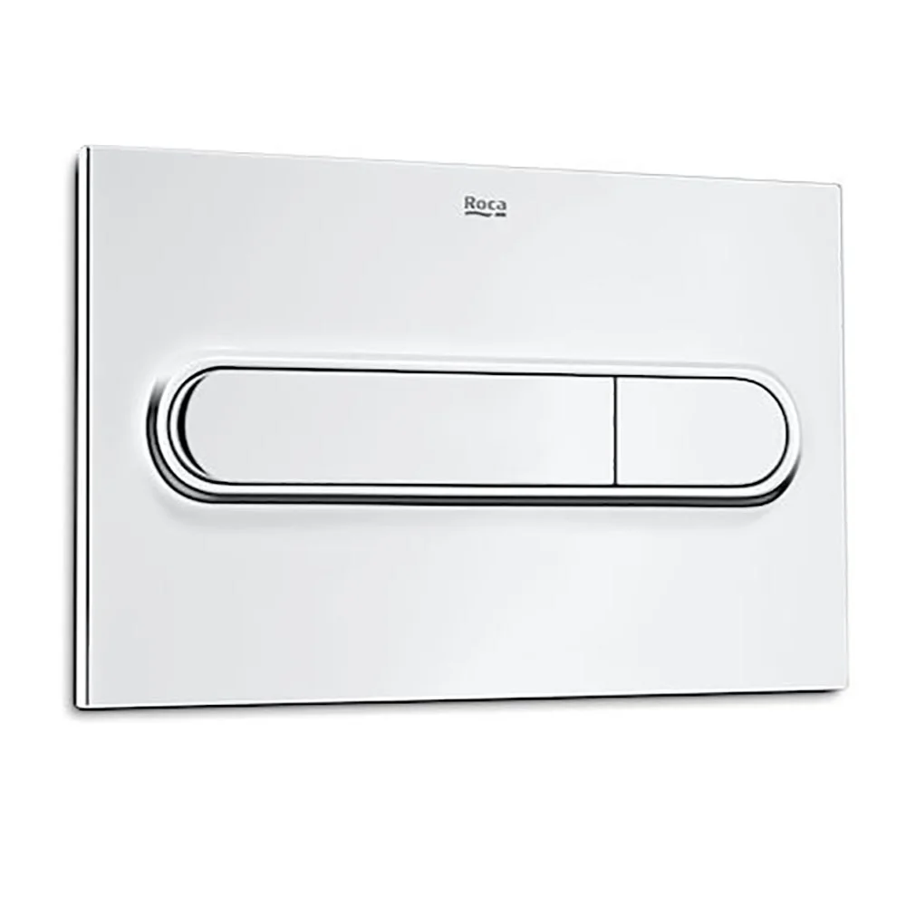 A stylish flush plate for use with Roca dual flush concealed cisterns. Features a modern and sleek design with polished chrome finish. Suitable for use in commercial installations.