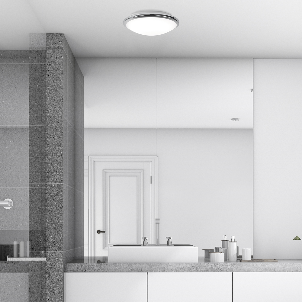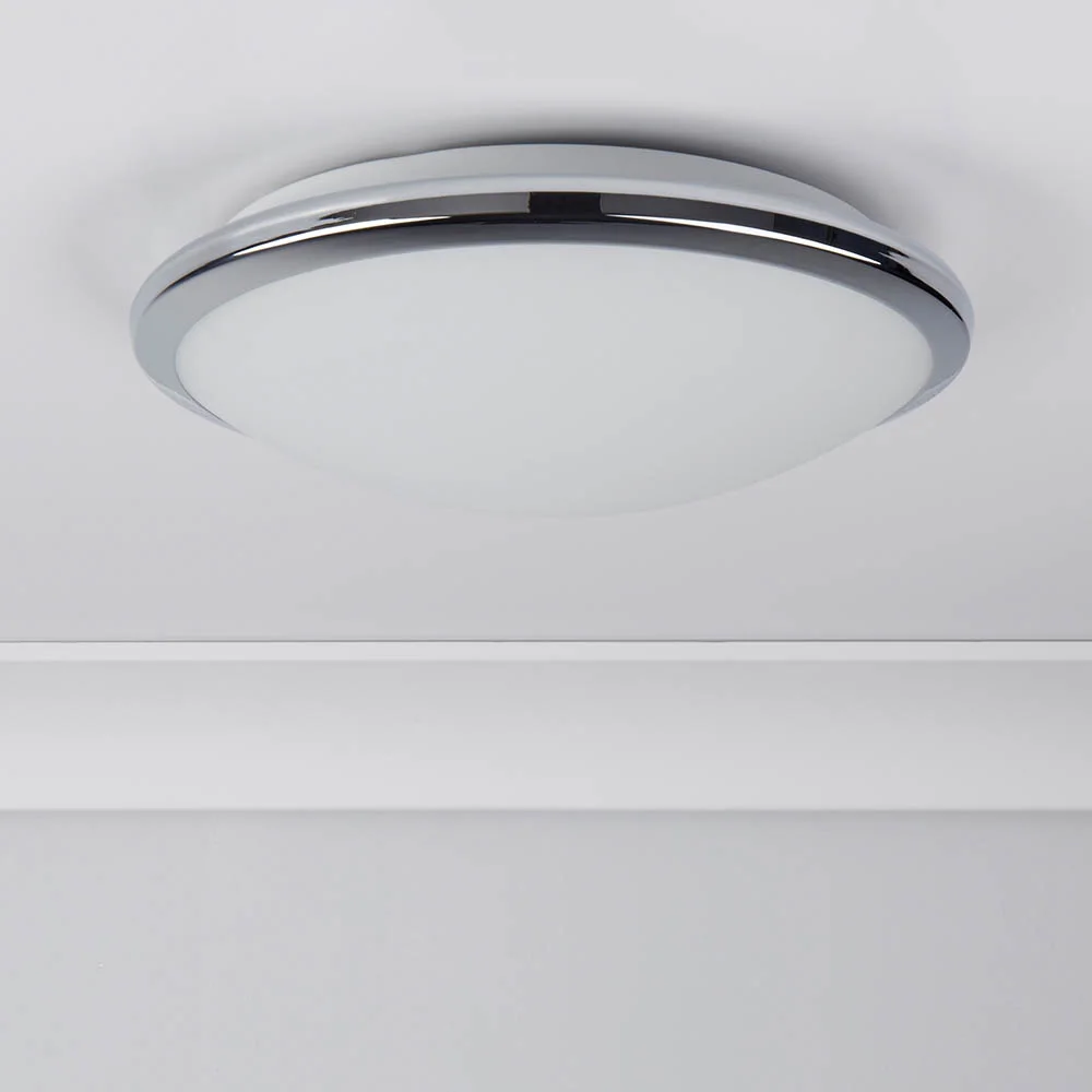 This sleek chrome LED flush light with frosted glass shade will look perfect in any room in your home. The energy saving LED light with frosted glass shade creates subtle lighting for the whole room while and the chrome finish looks modern and attractive.
