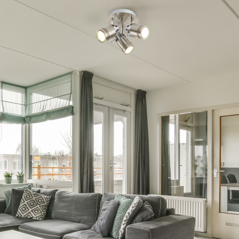Add style to your bathroom with this sophisticated 3 light ceiling mounted spotlight complete with a satin silver finish. Three bold beams attach to a spot plate and provide a generous spread of focused light. This item has a rating of IP44, meaning that it is fully splash proof and suitable for use in a bathroom setting.